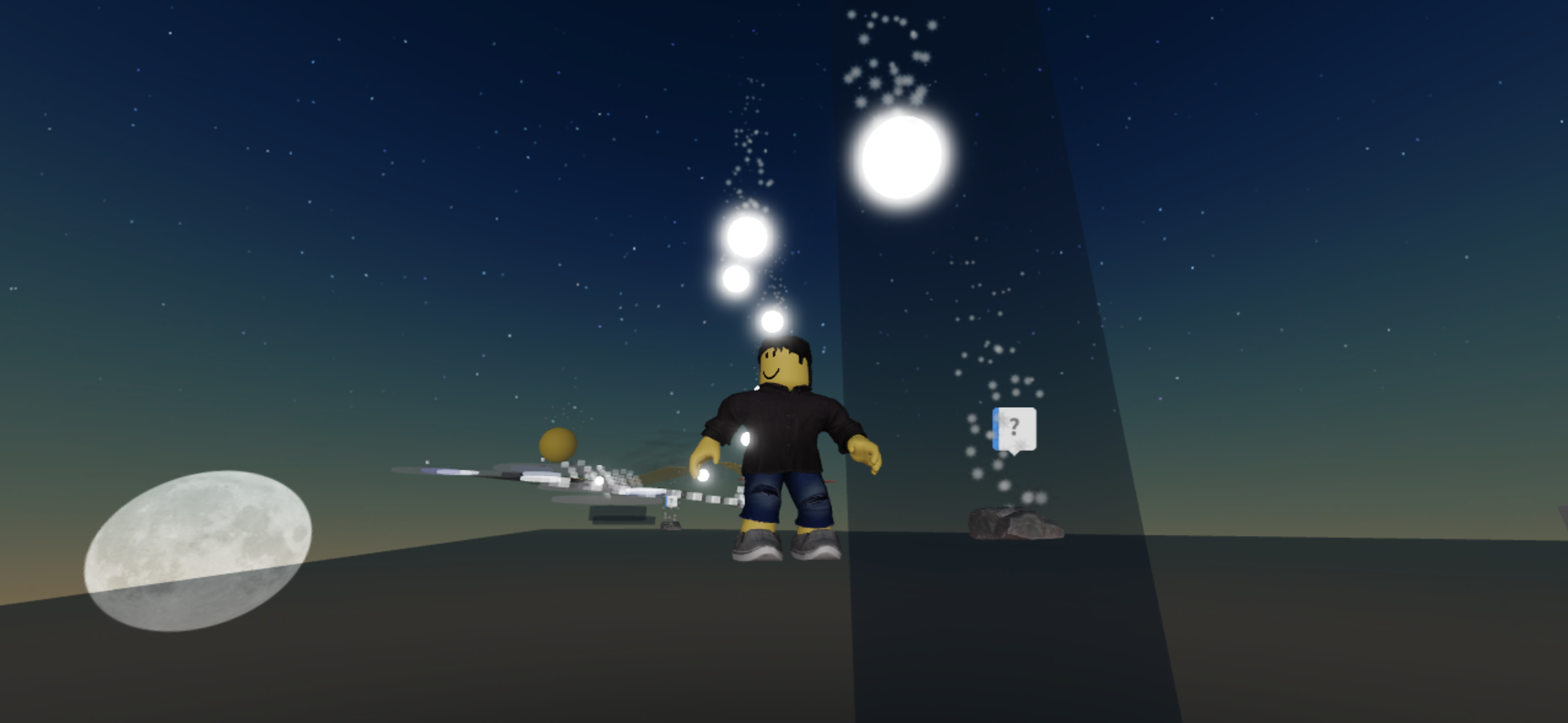 I follow the trail of glowing particles.